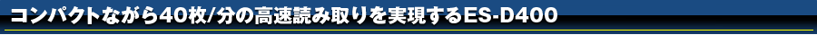 そこで利用したいのが、部門単位での導入に最適なコンパクトなスキャナー「ES-D400」だ。書類を上部のフィーダーにセットすることで、順番に紙を送ってスキャンするこができるシートフィードタイプのスキャナーとなっており、デスクの上はもちろんのこと、棚などにもスッキリと収るコンパクトな設計になっている。