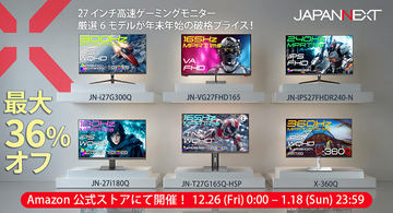 27インチゲーミングモニターが最大36%オフ!JAPANNEXT「Amazon年末年始セール」が開催