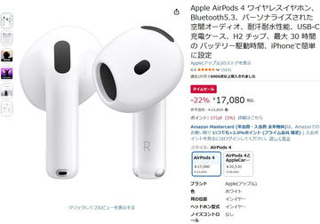 AirPods 4が4,720円引きで約1万7千円に。ノイキャン版は6,002円引き