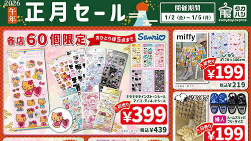 「アーク 新春初売セール」は通販は元日からスタート、店舗は1月3日から