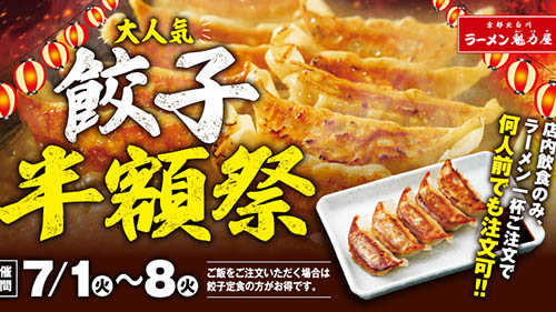 ラーメン1杯注文で自慢の餃子が何人前でも半額! 魁力屋が「餃子半額祭」を開催
