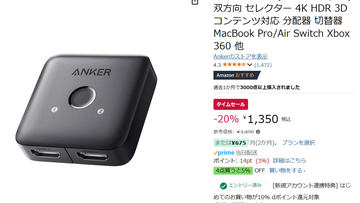 Ankerの4K対応HDMI切替器が1350円に。先どりスマイルSALE