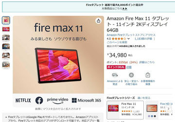 「Fire Max 11」が最大8400ポイント、「Kindle Paperwhite」は最大5330ポイント還元