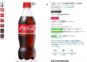 Amazonでコカ・コーラやジンジャーエールがセール。500mlコーラ41% OFF