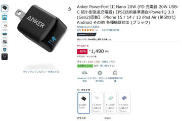 アンカーの20W USB充電器が1490円。Amazonタイムセール