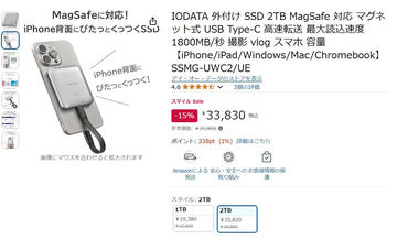 バッファローの小型スティックSSD 1TBが2,100円引き