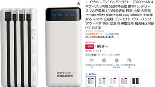 ワイヤレス充電対応の20,000mAhモバイルバッテリが5千円引き
