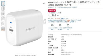AmazonベーシックのUSB充電器がタイムセール。20Wモデルで1296円