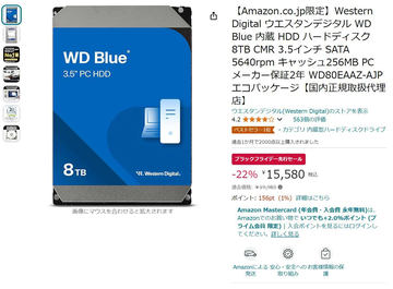 バッファローの外付けHDD 8TBが6,228円引き。SeeQVault対応