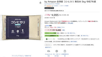 Amazonブランドの無洗米「コシヒカリ」が11% OFF。新生活セール