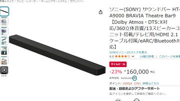 ソニー最上位サウンドバー「HT-A9000」が特別価格に。ソニーストアは50,600円引き