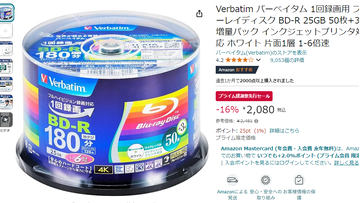 バーベイタム録画用BD×53枚が2080円。Amazonプライム感謝祭
