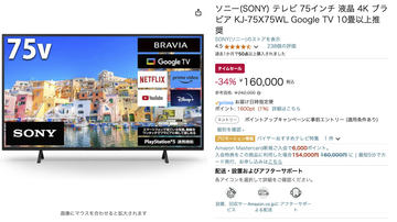 Amazon.co.jpでソニーのブラビアがタイムセール、4K液晶のスマートテレビ