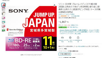 Amazonで日本製「ソニー録画用BD」が販売中。4点買うと5% OFFに