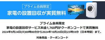 Amazon、テレビの設置・回収が実質無料のキャンペーン。10月20日まで