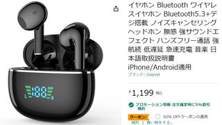 完全ワイヤレスイヤホンが税込539円! 50%OFFクーポンに注文確定5%OFFで660円引き!