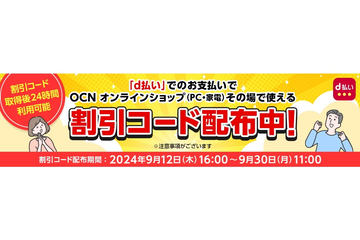 OCNオンラインショップ、d払いで最大1万円割引のキャンペーン