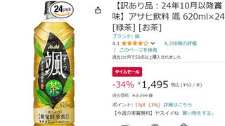 アサヒ飲料の緑茶「颯」の訳アリ品が34%OFFで1本あたり62円! 本日8日(月)から