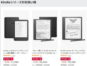 KindleがAmazonでセール。6インチ16GBモデルが20% OFFの11980円