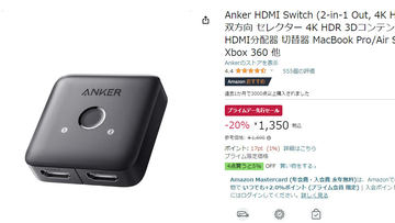 Anker HDMI切替器が1350円に。プライムデー先行セール