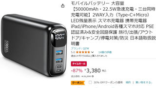 USB充電器にもなるAnker製モバイルバッテリが1,500円引き