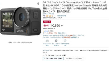 DJI「Osmo Action 3」が39% OFF。ジンバルやドローンもセール価格