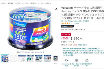 Verbatimの録画用BD×53枚が1990円に。Amazonタイムセール