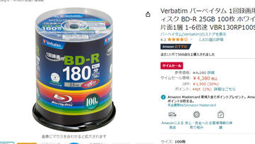 Verbatimの録画用BD×100枚が30% OFF。Amazonタイムセール