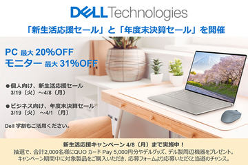 デル、ノートPCが最大20%オフ「新生活応援セール」。ビジネス向けのセールも