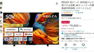 50型4K液晶レグザが79800円。Amazonで37% OFFに