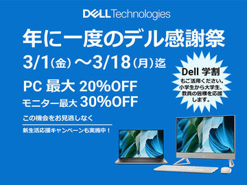デル、InspironやXPSが最大20%オフとなる「年に一度のデル感謝祭」開催中