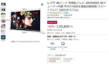 Amazonで4Kレグザのタイムセール。48型有機ELが42% OFF