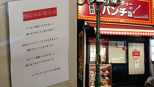 「スパゲッティーのパンチョ 町田店」が19日(月)で閉店 町田市初出店から約1年8カ月で撤退
