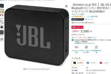 JBL防水スピーカーが3080円に。Amazonタイムセール