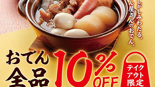はなまるうどんがテイクアウト限定「おでん全品10%OFF キャンペーン」を開催中! 「おうちで、おでん。特製だしがしみわたる、うどん屋さんのおでん」