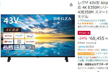 レグザやブラビアなど、4Kテレビもセール。Amazon初売り開始