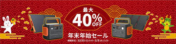 大容量ポータブル電源やソーラーパネルセットが最大40%オフ!Jackeryの年末年始セール