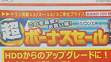 日替わり特価品も用意される「超ボーナスセール」がパソコン工房で開催、12月2日~15日まで