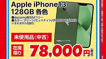 iPhone 13の未使用品が78,000円など、ドスパラ秋葉原本店の期間限定セール