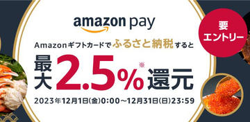 Amazon、ギフトカード残高でふるさと納税すると最大2.5%還元。12月31日まで
