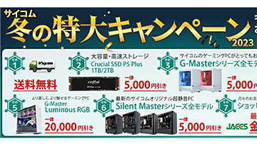 ゲーミングPCが最大2万5千円引き、サイコムが割引キャンペーンを実施中