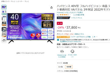 Amazon、2022年発売のハイセンスTVをセール。最大24% OFF
