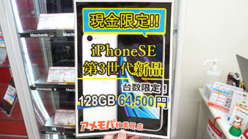 「iPhone SE 第3世代 128GBモデル」の新品が64,500円、アメモバでセール