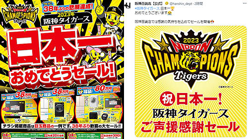 阪神タイガース38年ぶりの日本一!! ジョーシンや阪神百貨店などでセール