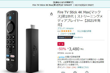 Amazon「Fire TV Stick 4K Max(第1世代)」半額セールは10月15日まで