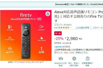 Amazon「Alexa対応音声認識リモコン Pro」25% OFFの2980円