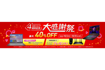 MSIストア4周年記念でゲーミングノートが20万円引き。記念モデルのノートも発売