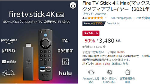Amazonの「Fire TV Stick 4K Max」が半額に