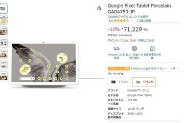 AmazonでGoogle Pixel Tabletが11% OFFの71229円