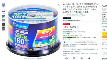 バーベイタム録画用BD×53枚入りが2099円。Amazon新生活セール